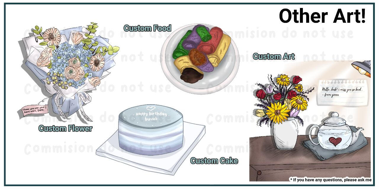 Intern : PayPal only!III.ย Please send your references, whether it's poses, expressions, clothing styles, food, and whatever references you want.VI. Orders that warrant expedited delivery must be marked with the #RUSH tag (Additional fees will apply).
